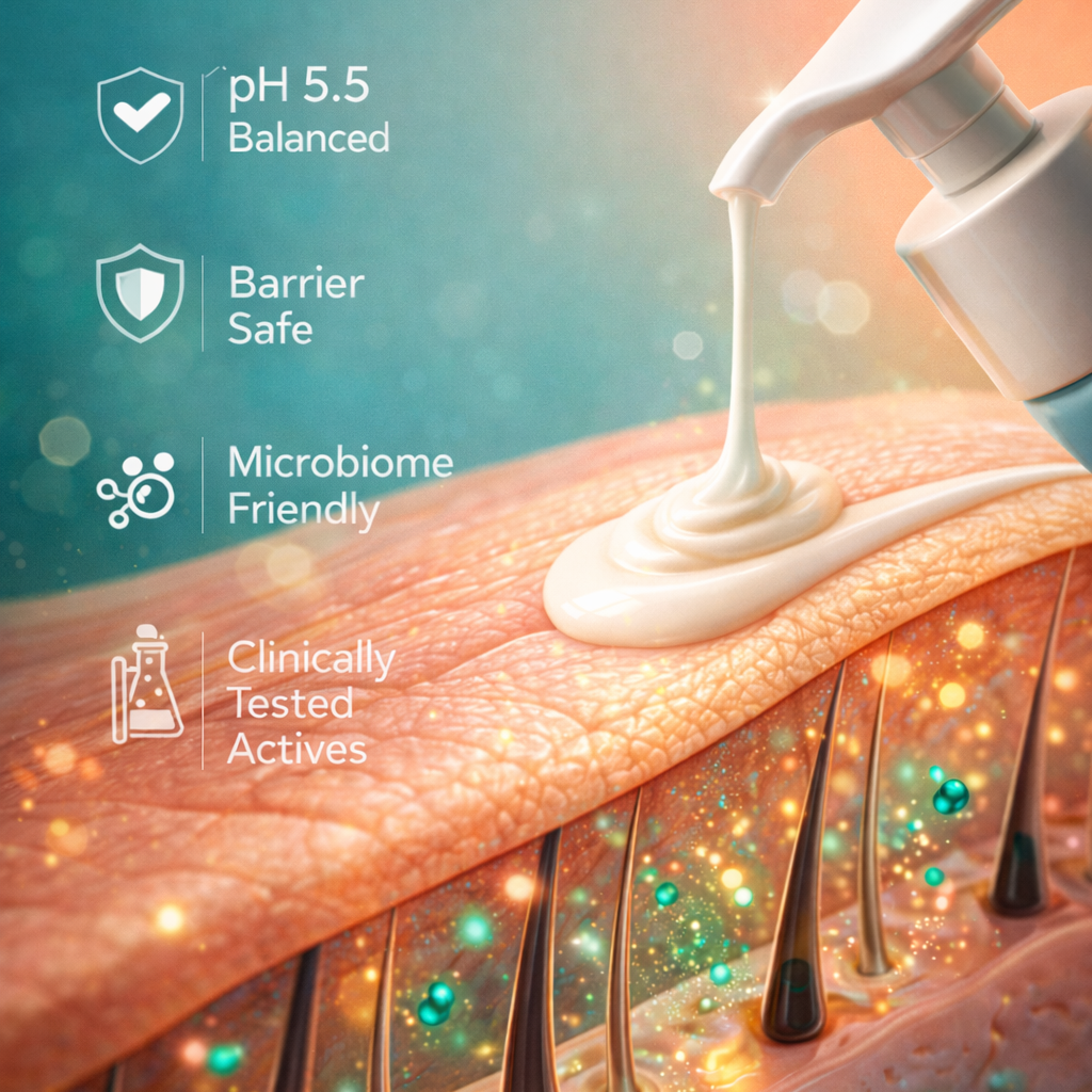 We believe that true hair health is actually skincare for your scalp. By prioritizing microbiome-friendly ingredients, we ensure your follicles receive deep, clinically tested nutrition without disrupting the delicate ecosystem required for growth.