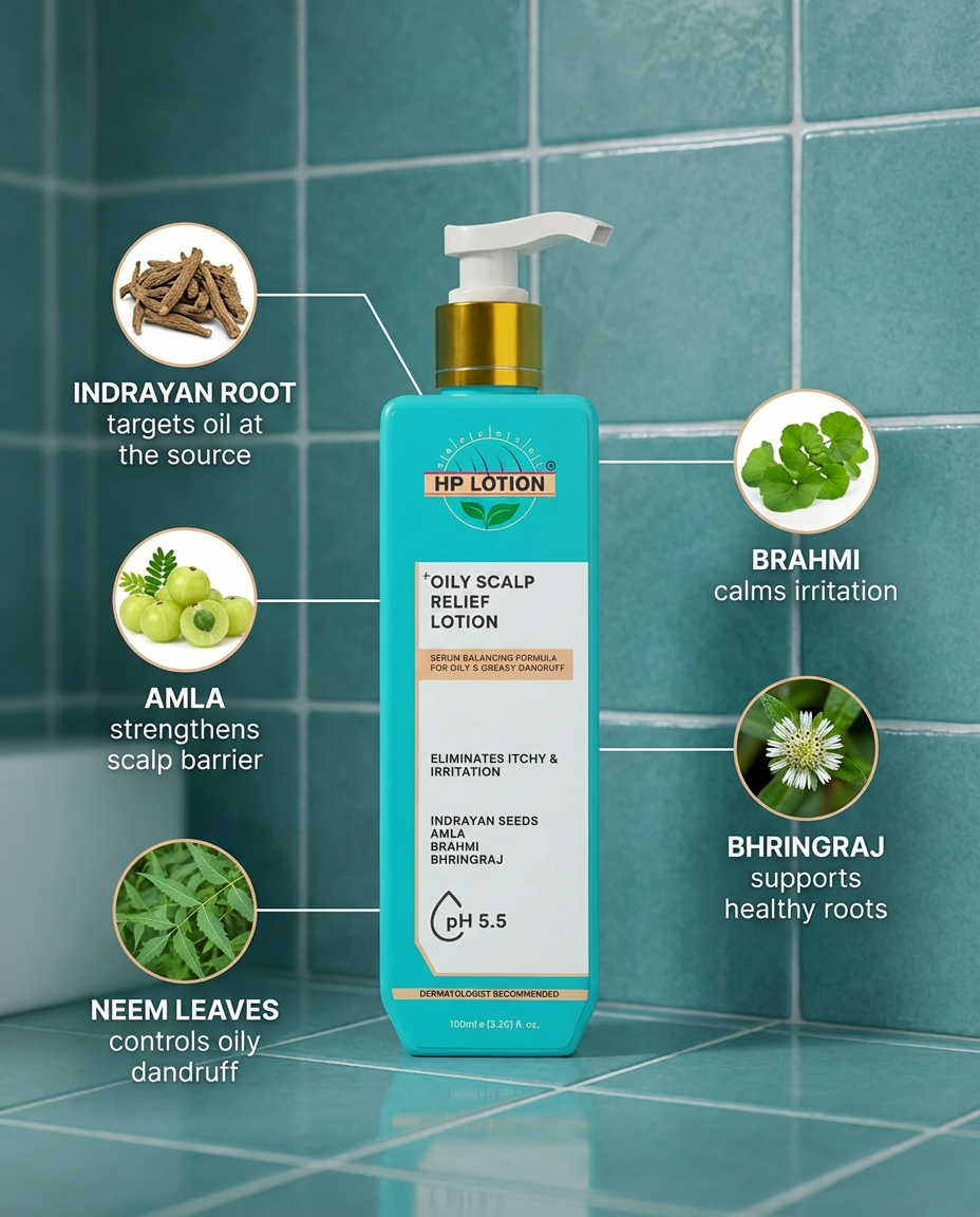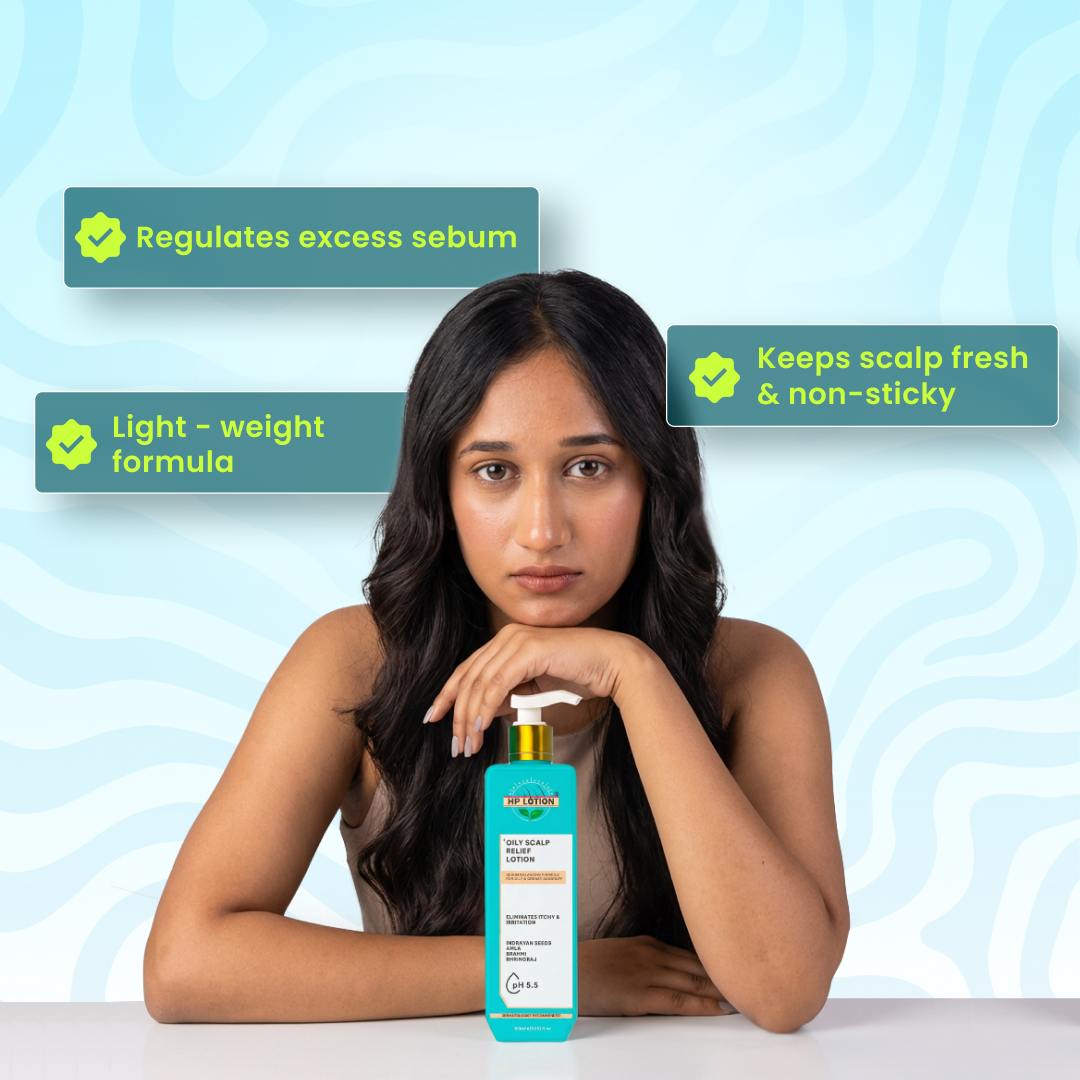 Control excess oil and banish greasy dandruff with our Oily Scalp Relief Lotion. This sebum-balancing formula penetrates deep into the scalp, regulating oil production and restoring its natural pH balance. Infused with powerful Himalayan botanicals like Indrayan seeds, amla, and neem, this lotion cleanses the scalp, prevents fungal infections, and promotes healthy hair growth.
