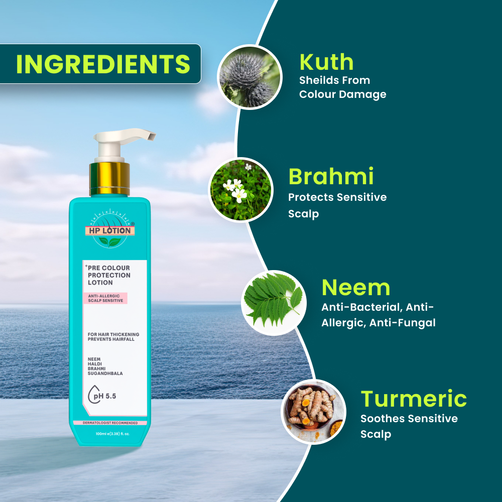 Protect your hair and scalp from the damaging effects of hair colour with our Pre-Color Protection Lotion. This innovative formula creates a protective barrier, minimising damage and irritation while maintaining your scalp's natural pH balance. Enriched with soothing and protective Himalayan herbs, it helps prevent hair thinning and itching associated with hair colouring.